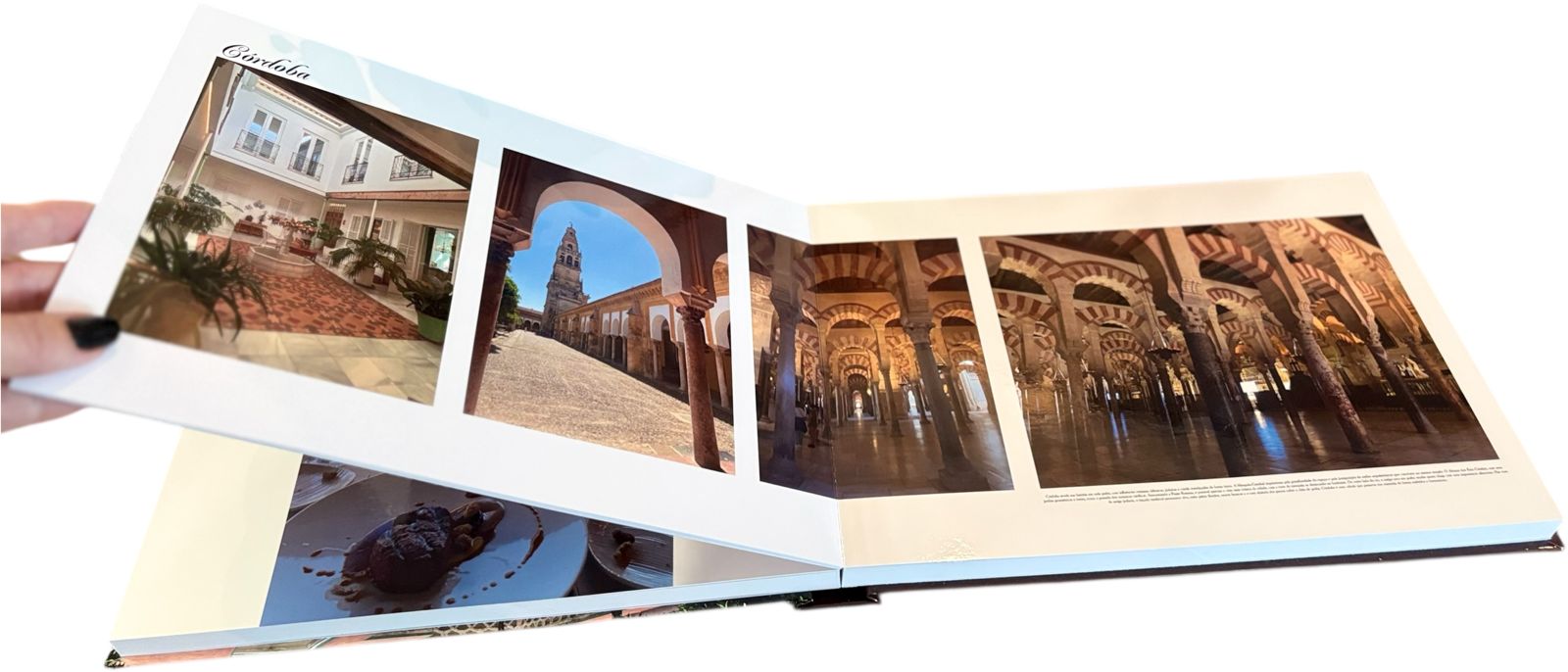 Aqui, a qualidade Layflat e a espessura de 800g ficam evidentes. Não há "curva da página" para esconder partes da sua foto!